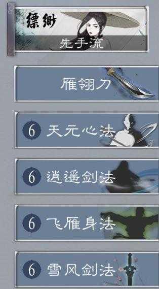 先手流中带了逍遥剑法和雪风剑法两种攻击类招式,飞雁身法用于防御和过牌,天元心法主要起到回内力的作用。