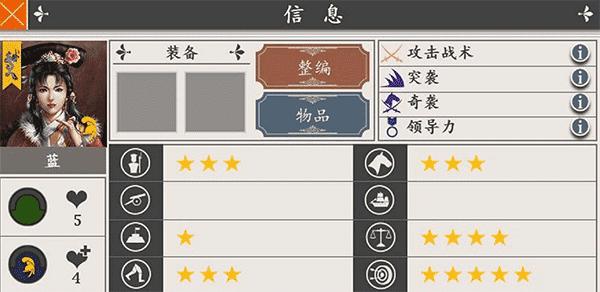3、被整编的将军一定要提前将物品卸下来,不然整编后物品会消失。还有一点特别重要,就是怎么选择整编与被整编,这里一定要选择有教学技能的将军被整编,这样该教学技能会为整编的将军相应的兵种加一颗星。