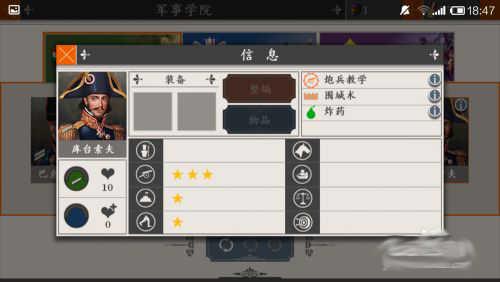 3、这里你会看到有三种不同星级的将领,一星的将领很多,二星的有几个,三星的只有两个,点击右上角的小叹号就可以看到将领的一些基本信息。如果看中哪个将领就可以用奖牌购买。