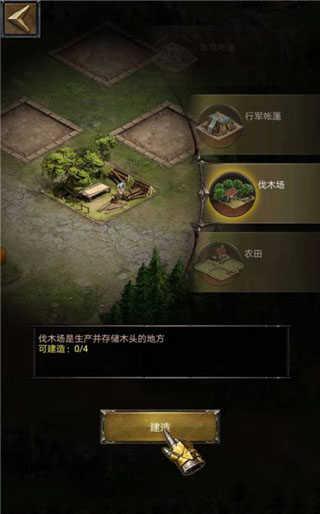 1、伐木场可以生产木材并储存木头的地方,升级伐木场可以获得更高的生产量,点击建造,如图所示