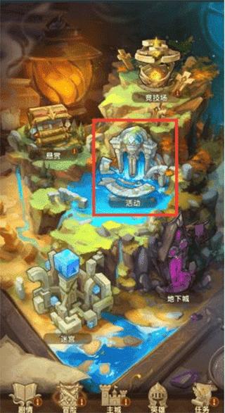 首先我们点击主页冒险按钮进入另一个界面,再界面中我们可以看到‘活动’的图标,点击进入。