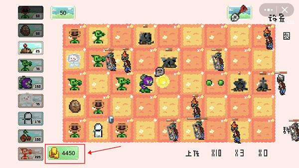 4、每个植物下方会显示所需阳光数量,只有阳光数量达到所需阳光数量时,才可以使用该植物