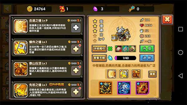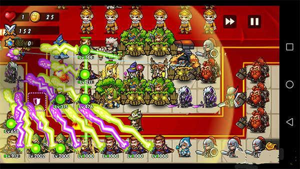 初始阵型:中级的减速法师比初级强不少,优先升·好,一个卫士是必要的,前期放3个小偷可以让经济更快,然后随意找两棵树蹲好弓箭手就行了