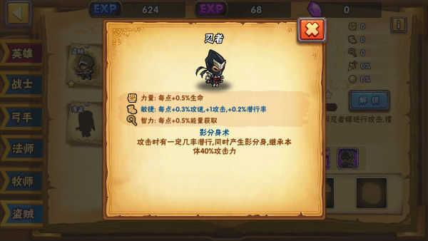 忍者是与刺客稍微有点不同的分支,主要输出来源于本体与影分身的写作,因为潜行会大幅增加攻击力,配合影分身在盗贼系里甚至是输出最高的。弹射属性则决定了适合对人群进行输出,除了配合蛮锤与冰法之外,在队伍前面与转角处都是不错的选择。
