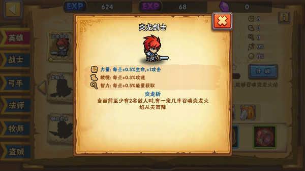 首先介绍的是炎龙剑士,炎龙剑士属于中规中矩的初始英雄,一般在团队内技能扮演DPS也能扮演肉T的角色,也因为如此,性能比较平衡,在到达三星之前,炎龙斩效果一般。阵容搭配上建议周围配合蛮锤勇士和冰法等控制型角色,尽可能提高出发炎龙斩的触发几率,因为炎龙斩触发是需要面前至少有两名敌人,利用控制性单位来“储存”敌人。(肯定有很多玩家不看说明都不知道炎龙斩这个“隐藏”技能)