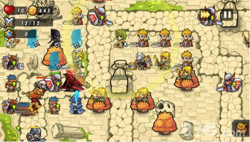 这关主要依靠大剑士和神射手的输出,尤其是大剑士的团结非常重要(大剑师的“裂地斩”技能最好也升个一两级,对前期帮助很大),所以需要利用小战士们把大剑士连成一体,如果有剑和弓也最好给大剑士和神射手带上。(没错,就应该如手术刀一样精细)