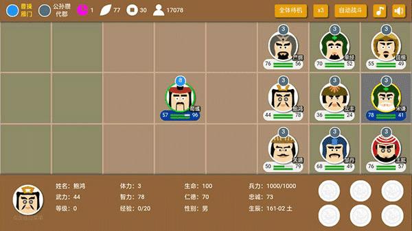 右边武将名字上面的数字分别表示武力和智力,例如曹操武力82智力89