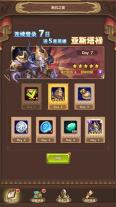 新兵任务是为新用户开启的,快速了解游戏玩法的一个活动,在这里即可领取五星英雄,又可以帮助小白玩家追赶头部玩家。7日签到送礼,别忘记这里还有一只黑暗系英雄