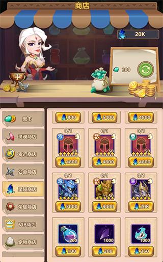 星陨商店主要出售英雄及英雄碎片,苍穹之翼-露丝、生灵守护者-戈登、地狱公爵-亚斯塔禄都在等待你的到来,顺便把魔尘、龙鳞、龙魂一起带走吧~