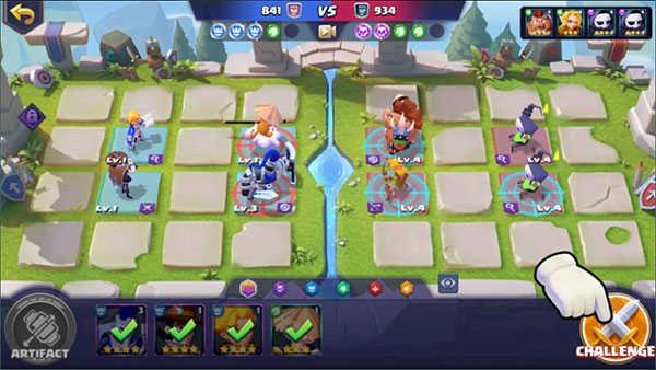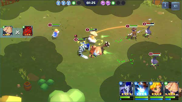 3、战斗开始后也是无需手动操作的,我方阵营会与敌方阵营自动战斗,蓝条满时也会自动释放技能,这一环节有点类似于大家所熟悉的自走棋;