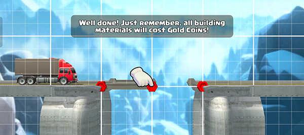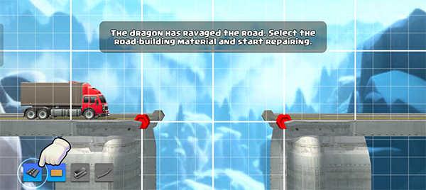 2、选择之后,从桥梁的一端使用手指拖动建筑材料到桥梁中间,然后在从中间拖动材料到桥梁的另一端;