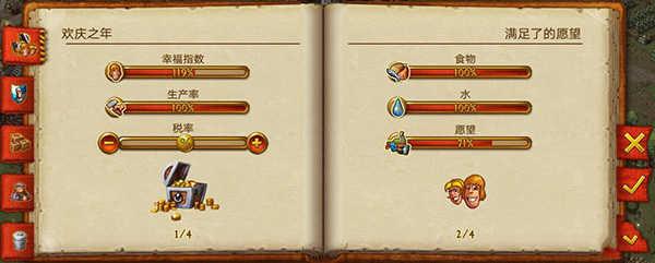资源键:在这里可以即时查看资源和镇民们的愿望,和商人进行交易,军队情况的预览(军队属于新版本的特定新系统)等等。