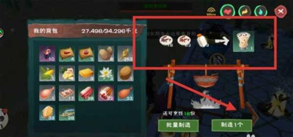 第四步,准备一个烹饪锅,并且选择,点击【烹饪】,如下图