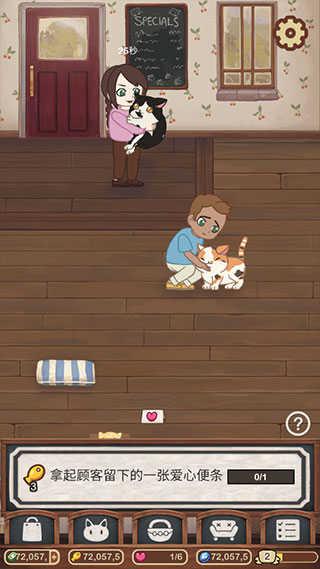 猫咪随着跟顾客玩耍的次数的增加,我们可以升级,升级之后,订单完成的奖励也是会翻倍的,不仅要解锁猫咪,还要对猫咪做培养。