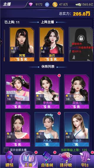 1、主线剧情是产出金币、金块、营销点数的主要场所,玩家可以通过点击“打赏”,或者“自动打赏”积攒主播的心动值,心动值满了以后,即可连麦主播