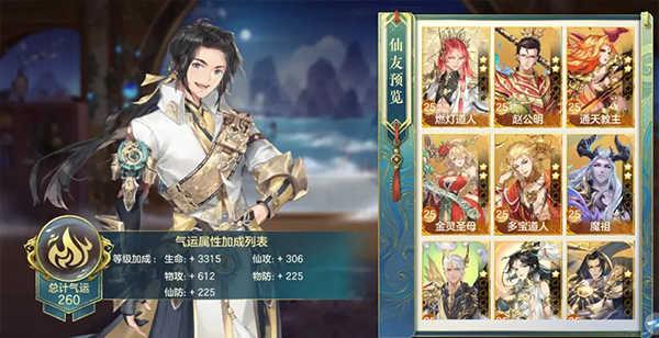 洞府中还有点仙台,通过聚灵阵可以生产气运,消耗气运提升仙友的气运等级获得属性加成,是非常不错的效果。
