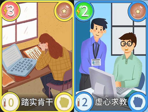 经常刷技能经验,然后选择高难度的工作,普通难度8月份能提前转正。上班加班通用混玩,不用的牌尽快分解,升级其他卡牌,前期常用:准时上下班+、人傻钱少(上班牌),自信(加班牌)+,踏实、能言善辩(通用牌)。