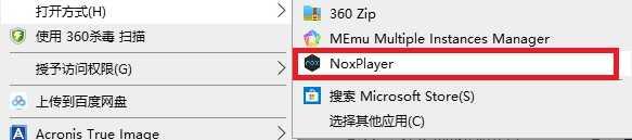 3、安装好安卓模拟器后,选中(apk)右击用NoxPlayer(夜神模拟器)运行软件。