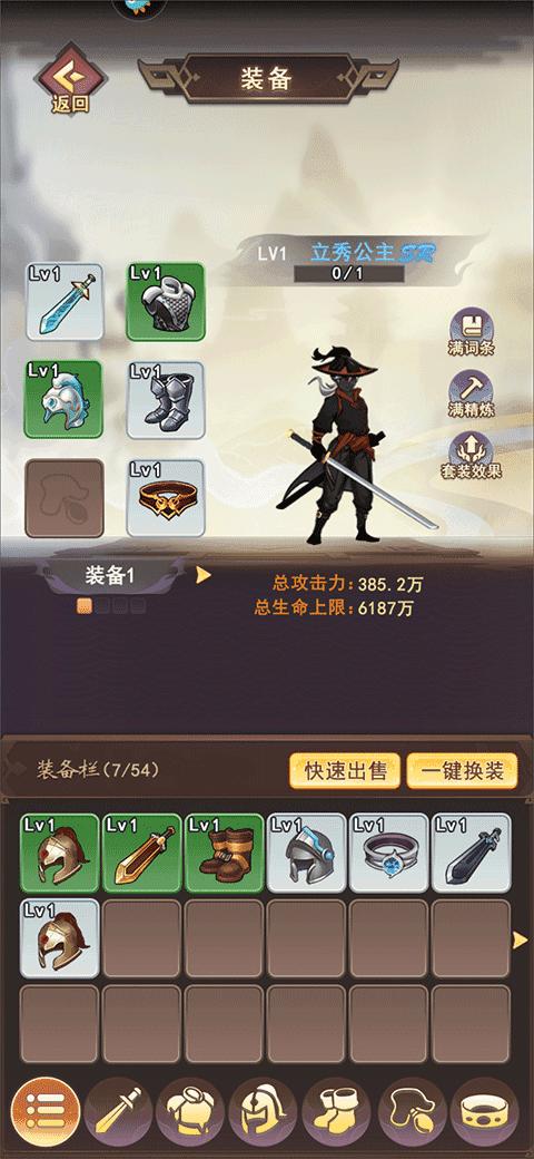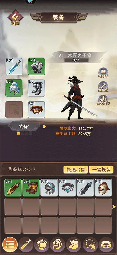 5、获得的装备可以在装备页面中将装备穿戴在角色上,可以为角色提升一定的战斗力、防御力等