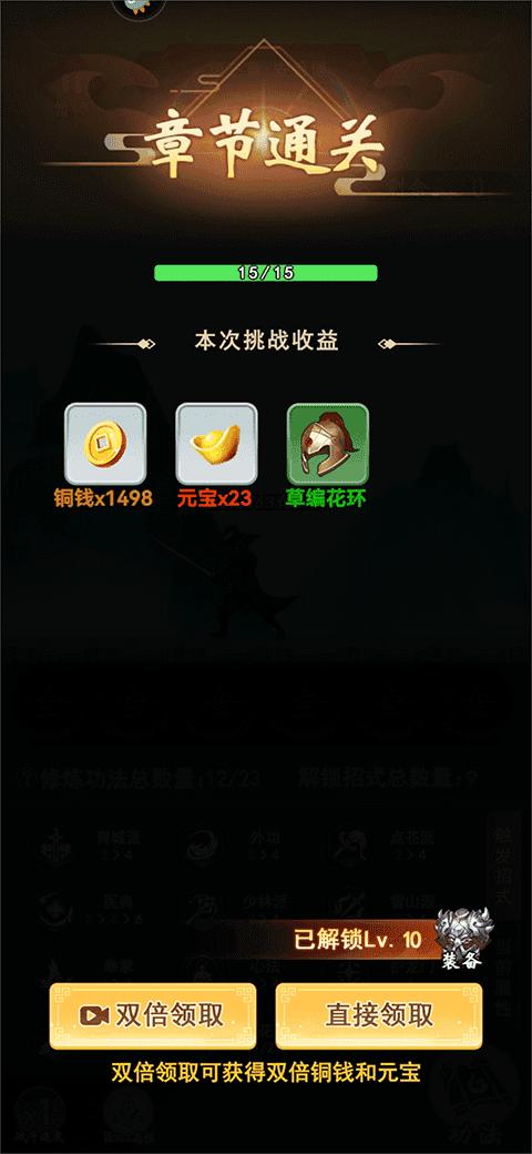 4、章节成功过关后即可收获奖励和装备