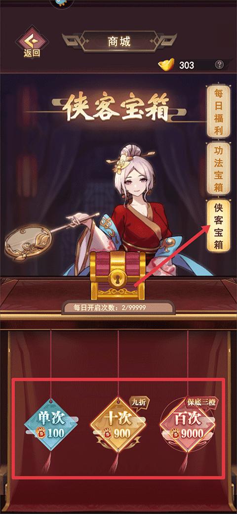 6、游戏中提供了丰富的侠客角色,玩家可以在商城中的侠客宝箱中抽取