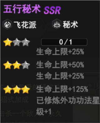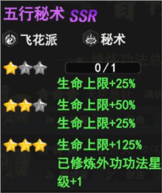 五行秘术(飞花派、秘术)——升至3星使已修炼外功功法星级+1,提升生命上限
