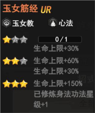 玉女筋经(玉女教、心法)——升至3星使已修炼身法功法星级+1,提升生命上限