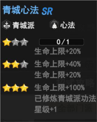 青城心法(青城派、心法)——升至3星使已修炼青城派功法星级+1,提升攻击力&生命上限