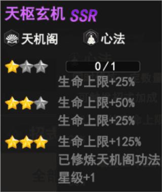 天枢玄机(天机阁、心法)——升至3星使已修炼天机阁功法星级+1,提升攻击力&生命上限