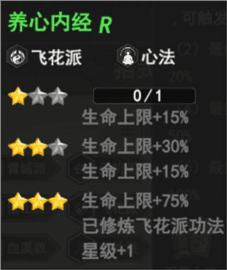 养心内经(飞花派、心法)——升至3星使已修炼飞花派功法星级+1,提升攻击力&生命上限