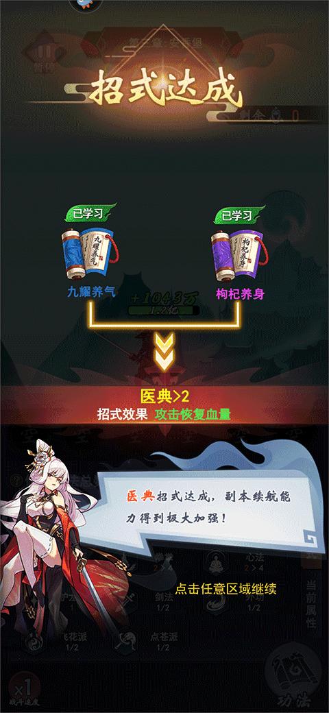 3、学习一定数量的同类型功法后可以触发招式加成,副本续航能力将得到极大加强