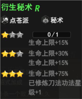衍生秘术(点苍派、秘术)——升至3星使已修炼刀法功法星级+1,提升攻击力