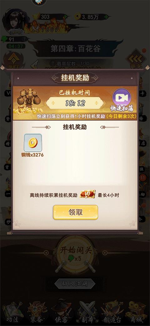 铜钱获取:通过章节闯关、扫荡关卡、挂机奖励、日常任务以及各种礼包中都可以获取。