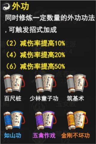 1、主体6外功无脑拿(6外功拿齐同时还会促发2少林派加血),然后后期再拿“五行秘术”升到3星促发外功功法星级+1,这个功法见到可以直接拿,建议尽量把外功先升到2星,然后再把“五行秘术”升到3星,这样性价比会更高