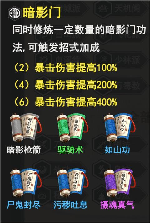 污秽吐息(暗影门、心法)——升至3星使已修炼暗影门功法星级+1,提升攻击力&生命上限