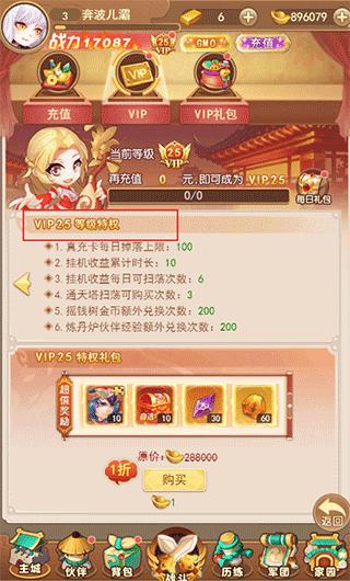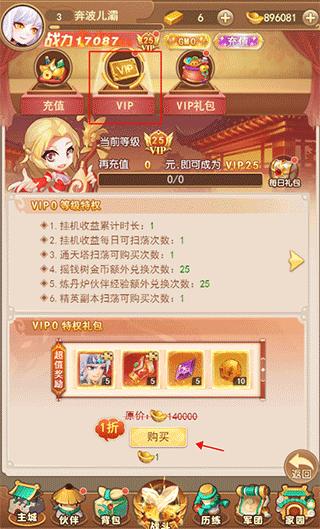 2、由于上号就送了大量的元宝和铜币,而且也获得了vip25级,这里直接用元宝购买