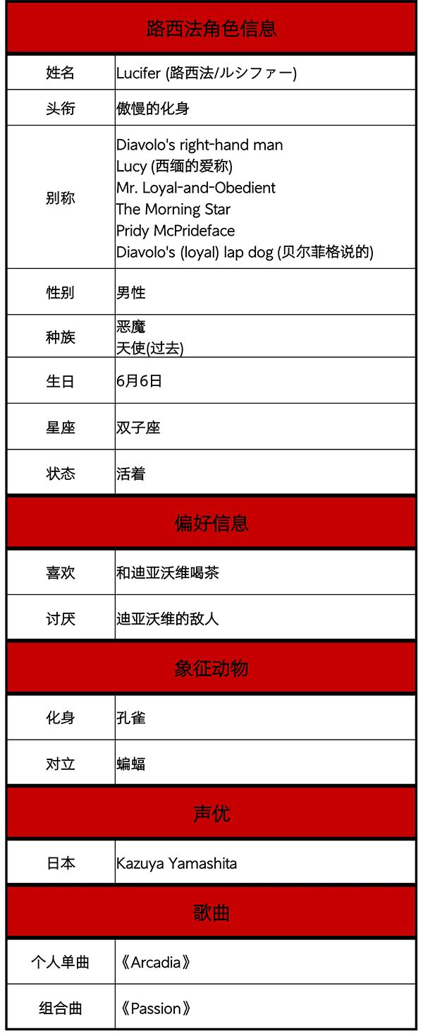 作为兄弟中的长子和一家之主,路西法对外将自己塑造成一个冷静、沉着、威严的形象。他的弟弟们经常抱怨他太过严厉了。