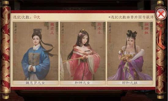 相较于寻访的循序渐进,选妃玩法就直接很多。每当圣上完成新的国家等级目标,就可以有一次选妃机会,可以在三位备选佳人中任选一位娶回宫中,简单直接