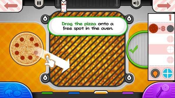 切换到配料站,为每个披萨添加各种配料。前往烘焙站,在烤箱中烹制披萨,直到烤得恰到好处。