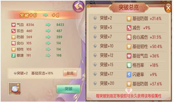 消耗随从突破道具,突破随从品级,增加随从各项实力提高战力(突破到指定条件有额外特殊属性奖励);