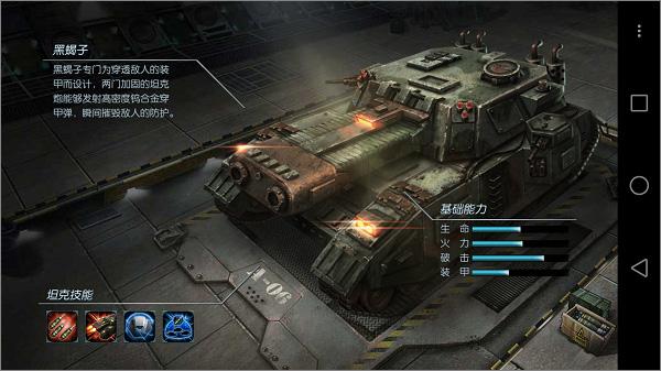 4、火力科技:黑蝎子坦克为我方全体单位提供先进的火力科技,使全体火力值得到大幅提升,一个全员提升伤害的BUFF,让敌人在我方面前毫无反击之力!