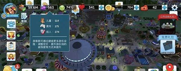 乐趣受游乐设施影响,美食受餐厅数量影响,卫生则受垃圾数量影响。想要提升平均满意度,便必须提升这三者的满意度。所以,在游戏中我们要尽可能多的建设新的游乐和美食建筑,同时升级已有建筑。另外,平均满意度还会受到道路的铺设影响,要尽可能的让服务设施覆盖所有道路,不然多余的道路会产生额外的垃圾,影响整体满意度。