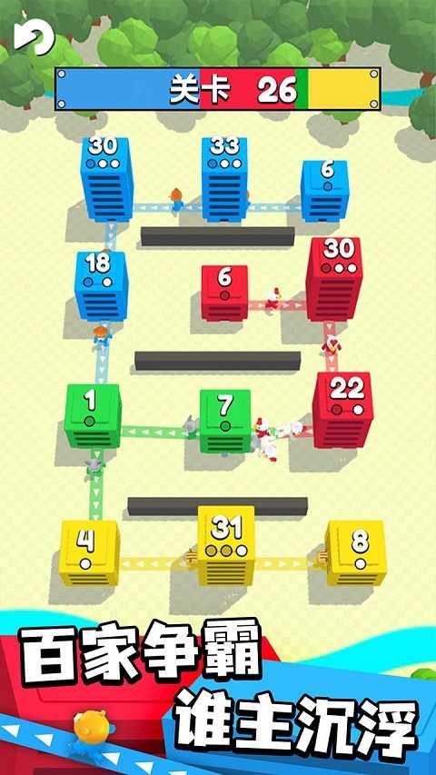 《城市争夺战》是一款由国外著名游戏公司Voodoo推出的现代题材休闲战略免费手游。玩家在游戏中控制自己的大楼与敌人展开激烈对抗,在对抗过程中努力发展大楼的实力,占领更多的敌人大楼,最终击败对手占领当前城市内的所有大楼。游戏亮点是以较为经典简单的战略玩法为核心,通过可爱的动物造型、简洁清爽的画面、巧妙的关卡设计以及简单的操作,为玩家呈现出一款堪比现象级小品的游戏作品。