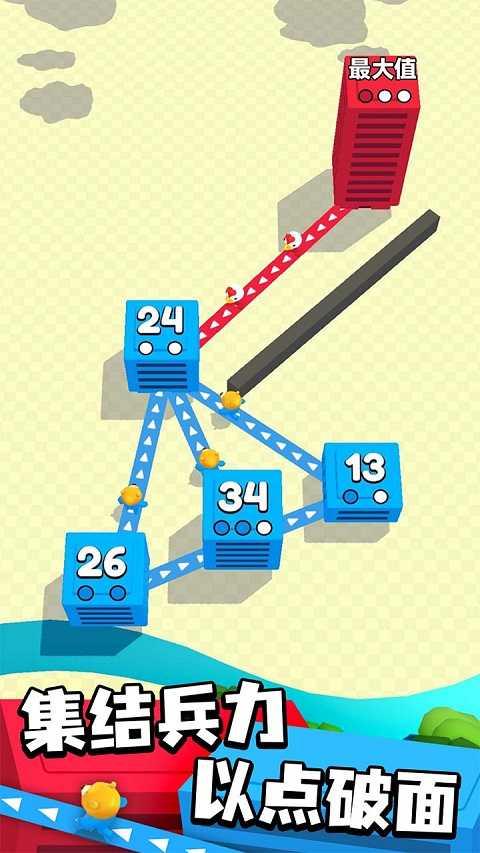 用手指滑动可以创建大楼之间的连接。这时士兵们会不断的进行入侵,攻占其他大楼;