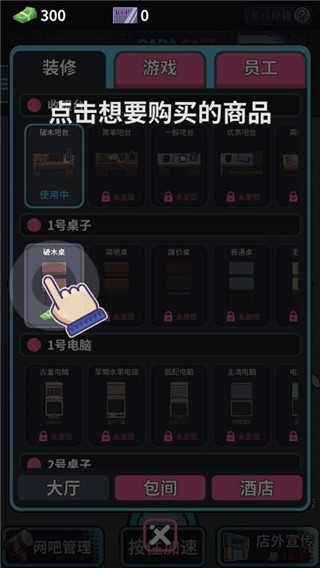 2、游戏设备:在游戏前期可以购买高端的游戏设备,高端设备可以获得更多的网费,很快就能够回本,并且高端的设备可以提升口碑,吸引更多的顾客来上网。