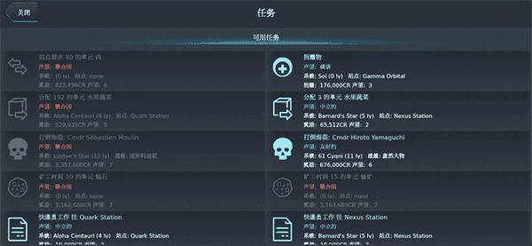 旅行任务(跃迁到任务地点→跃迁回接任务的空间站→提交任务拿奖励)
