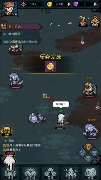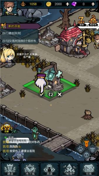 然后需要复活的人就满血了,而且是十几个人打一个怪,很快,就这样多退几次,升级建筑的东西有了,直接买装备推,简单的很。