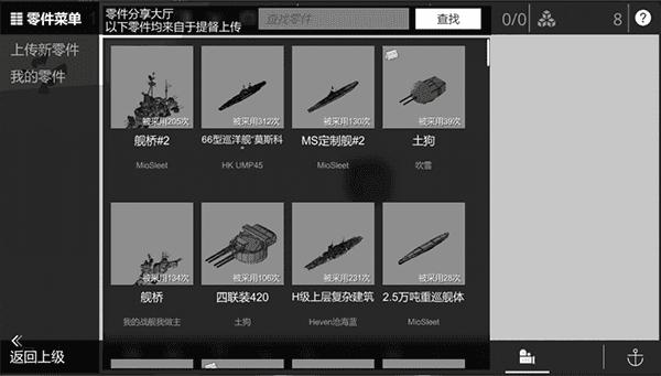 自定义零件是其他提督上传的零件组合体。这其中有各类舰体、武器结构、上层建筑等。您可以自行选择您喜欢的部分进行组装