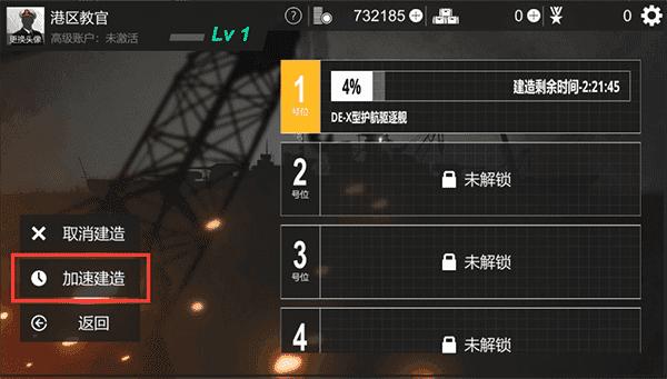 选择对应渠位,点击加速并确认,即可立即完成战舰的建造。使用完毕后,战舰即建造完毕,点击接受战舰,即可迎接您的战舰啦