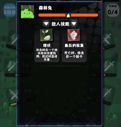 3、可以使用骰子和行动点触发地块上的技能,如攻击、防御,但是每个地块上只能触发一次。一般来说,骰子的点数越大,触发地块技能时效果就越强。